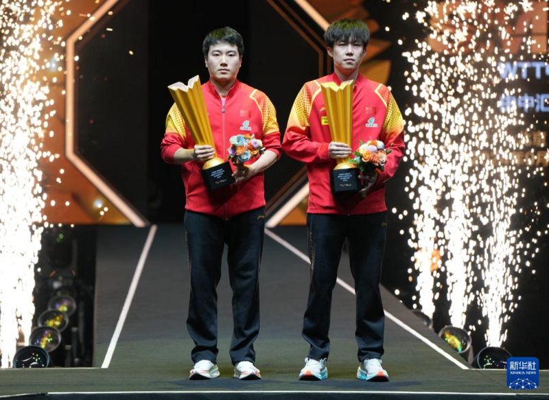 10月5日,2024年WTT中国大满贯正赛第七天,中国选手王楚钦/梁靖崑战胜队友林高远/林诗栋,夺得男双冠军。