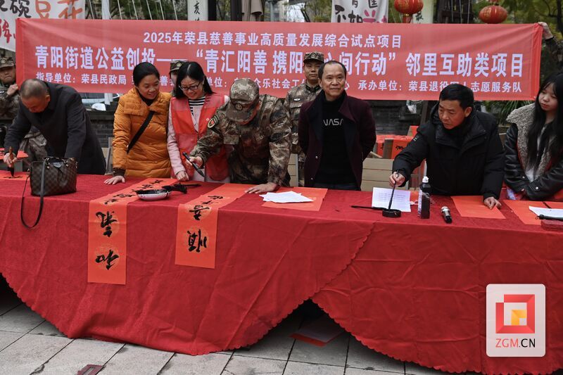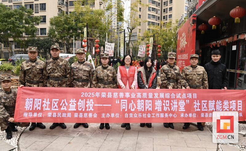 2月9日,荣县退役军人志愿服务队联合荣县青阳街道退役军人志愿分队、自贡众乐社会工作服务中心志愿者近20人,在“荣州三绝”餐饮店及周边社区开展慈善“六进”先行地“爱心汇聚朝阳里”主题志愿服务活动。活动以惠民服务为纽带,将温暖与关怀送进社区、送进居民家,为即将到来的春节增添了浓厚的文化氛围和安全保障,赢得群众广泛点赞。