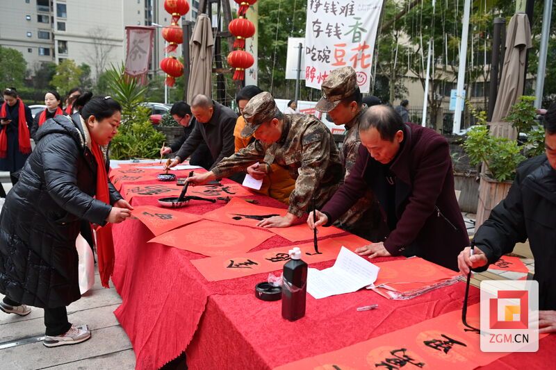 服务多元,惠民举措暖人心。活动现场,退役军人志愿服务队与“众乐”社工志愿者分工协作,围绕群众需求开展义务理发、春联书写、健康义诊、安全检查等多项公益服务,志愿者们手持剪刀,为近20名居民免费修剪头发,细致的服务让群众直呼“贴心”;医疗志愿者范长青等为30余名群众测量血压,提供健康咨询,普及冬季养生知识,守护居民健康;书法志愿者莫玉文等挥毫泼墨,现场书写春联40余副,将新春的祝福与传统文化融入笔尖,传递节日温情;志愿者甯炀等走进社区和餐饮店,对消防通道、灭火器等设施进行全面检查,及时消除安全隐患,筑牢社区安全防线。