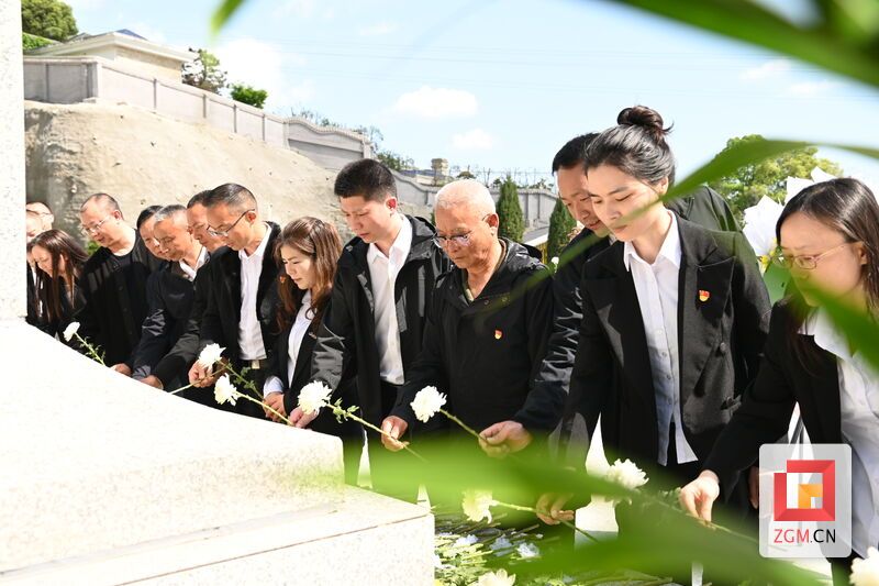 随后,参加祭扫的全体人员手持鲜花走向墓区,轻放在墓碑前,并深深鞠躬,向长眠于此的英雄致以崇高敬意。
