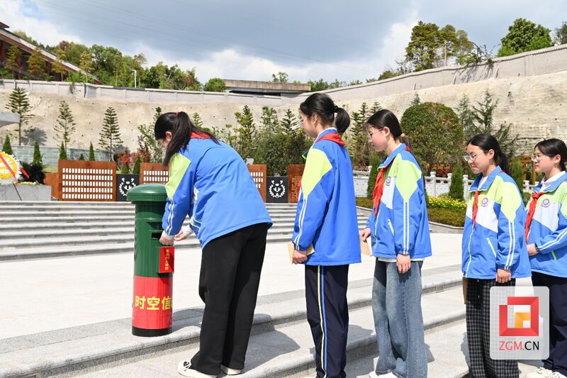最为动人的环节当属“时空信箱”。10名学生将提前写好的《致烈士的一封信》,郑重地投入信箱,仿佛完成了一次跨越时空的对话。学生吴婉绮稚嫩的笔迹在信纸上舒展:“亲爱的烈士爷爷,谢谢你们用生命守护了这片土地,我会把这份敬意与感恩藏在心里,好好长大,把你们的故事讲给更多人听……”。
